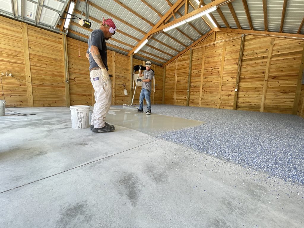 Transform your old gray concrete into a finished showpiece! Our epoxy coating & flake systems come in a huge variety of color blends for commercial & residential applications.